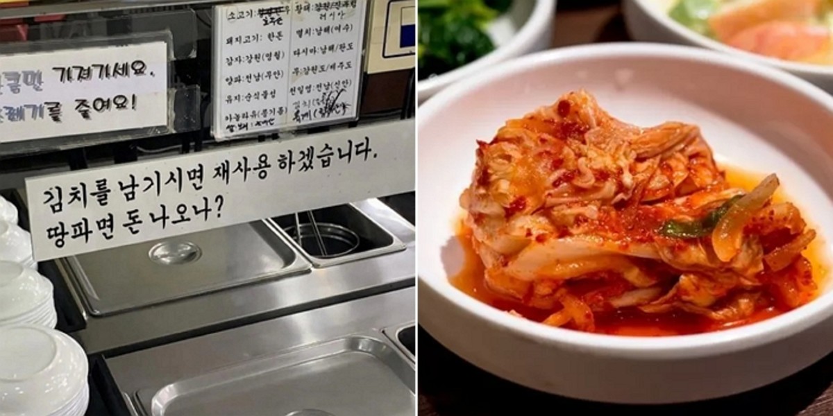 "김치 남기시면 재사용하겠습니다. 땅 파면 돈 나오나?"