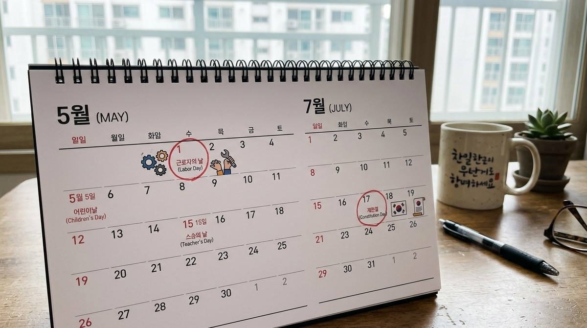 올해부터 5월 1일 노동절과 7월 17일 제헌절이 법정 공휴일로 새롭게 지정됐다.
