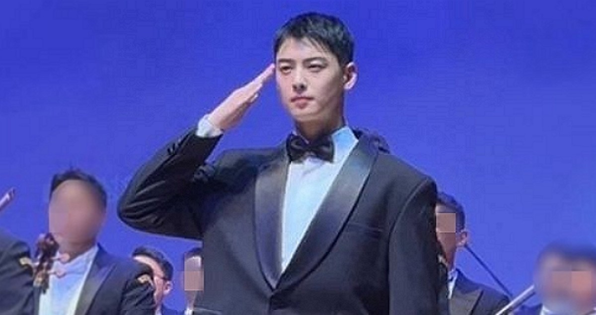 29일 온라인 커뮤니티에는 차은우가 지난 23일 군악대 행사에서 활동하는 사진이 올라왔다. 사진에서 차은우는 정장과 나비 넥타이 차림으로 오케스트라 단원들과 함께 서서 관객들에게 경례를 하고 있다.
