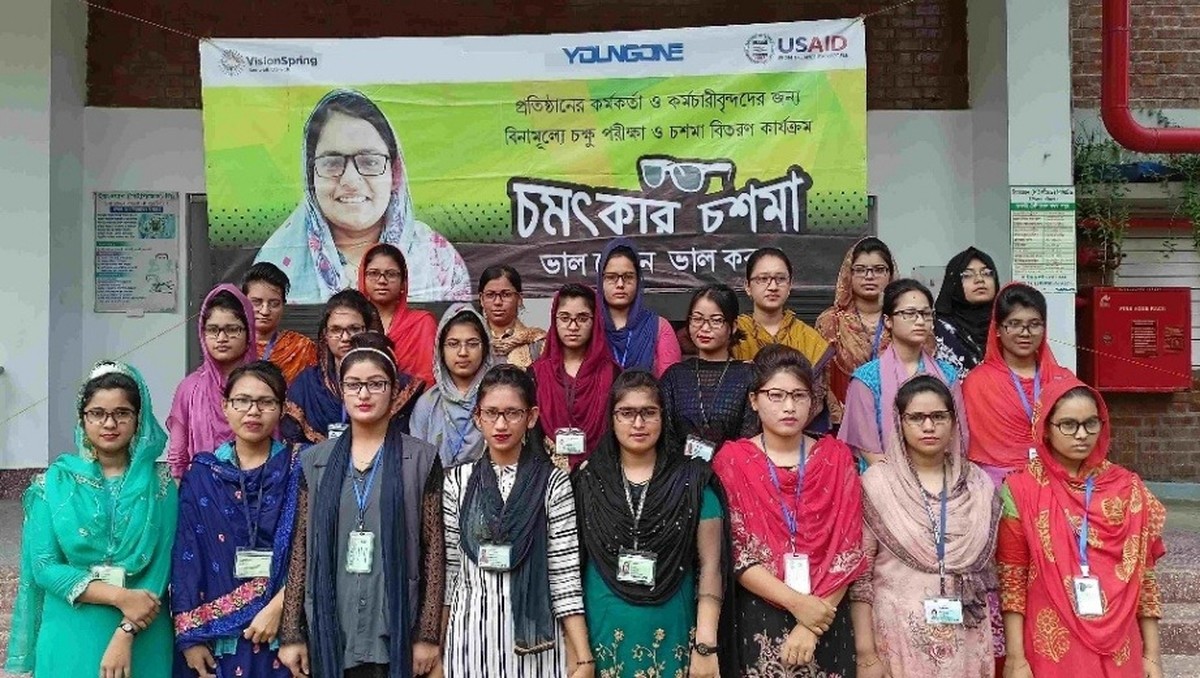 영원무역으로부터 제공받은 안경을 쓰고 있는 방글라데시 현지 직원들 / 사진 제공=영원무역