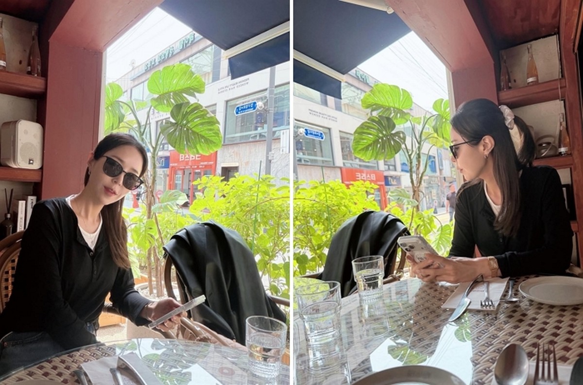지난 27일 신지는 개인 사회관계망서비스(SNS)에 '외출'이라는 짧은 문구와 함께 식당에서 찍은 사진을 올렸다.