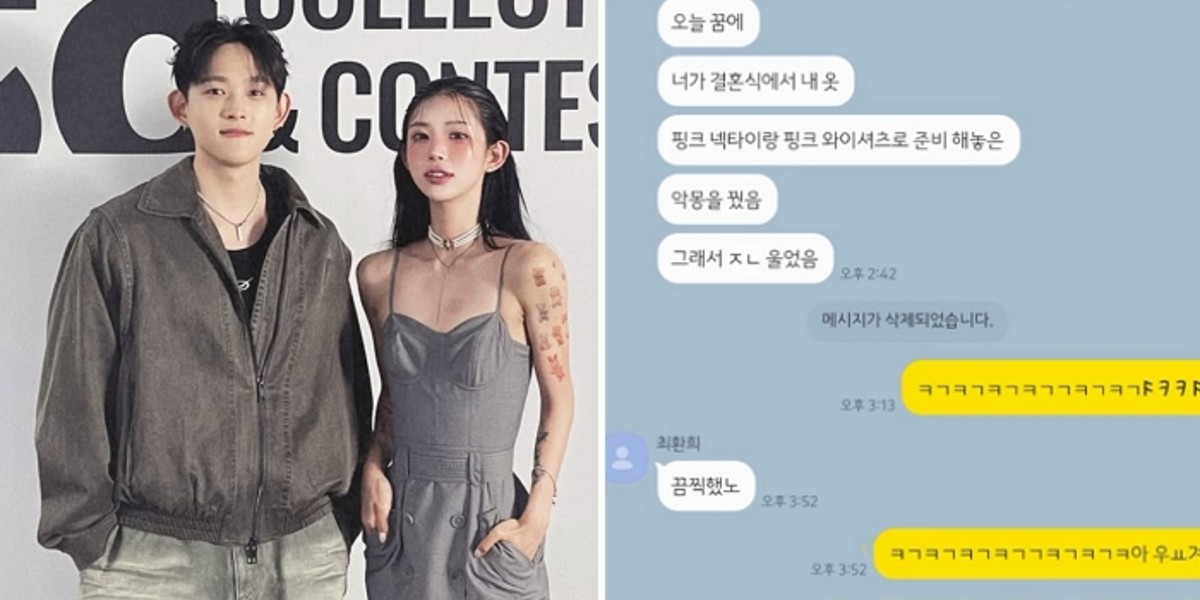 공개된 메시지에서 최환희는 "오늘 꿈에 네가 결혼식에서 내 옷 핑크 넥타이랑 핑크 와이셔츠로 준비해놓은 악몽을 꿨다"며 "그래서 울었다. 끔찍했다"고 농담 섞인 공포를 고백했다.