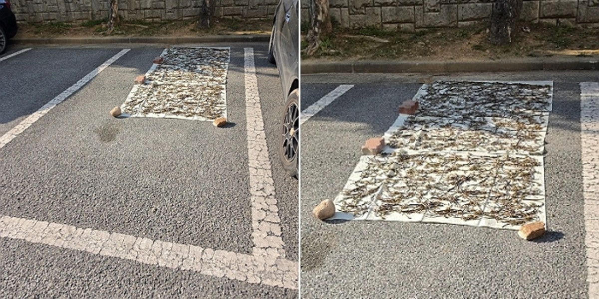 최근 아파트 내 '무개념 주차' 문제가 사회적 공분을 사고 있는 가운데, 이번에는 주차 칸에 나물을 말리는 황당한 사례가 등장했다.
