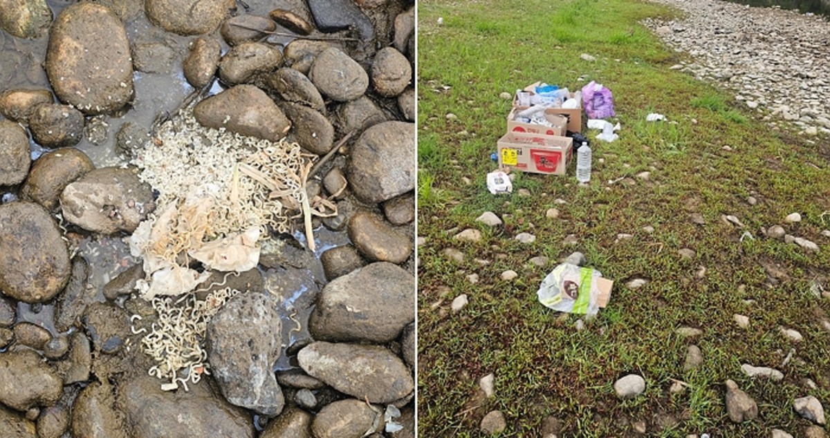 제보자 A씨가 공개한 3장의 사진에는 라면과 파, 만두 등 음식물 쓰레기가 그대로 남겨져 있고, 각종 포장재와 봉투들이 강변 일대에 무더기로 쌓여 있는 모습이 담겼다.