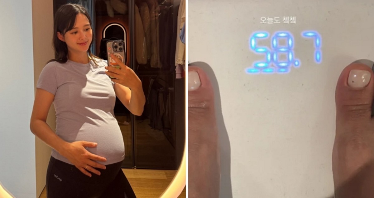 임신 8개월 차에 접어들어 만삭에 가까워진 시점이지만, 체중은 일주일 전 59.4kg에서 오히려 0.7kg 감소하며 58kg대로 내려앉았다.