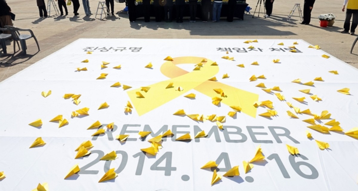 지난 16일 전남 목포신항에서 열린 세월호 참사 12주기 목포기억식에서 추모객들이 날린 노란 종이비행기가 놓여있다. (공동취재)2026.4.16/뉴스1
