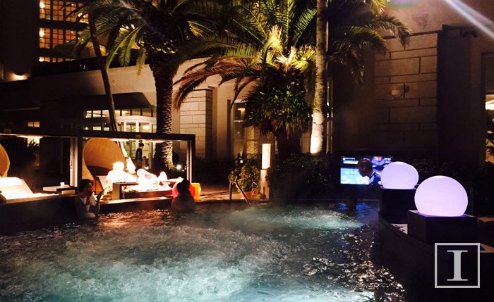 저녁이 되면서 기분 좋을 정도로 따뜻한 물에서 수영을 시작했다. 풀은 실내외로 이어져 있었고 야외에는 커다란 화면에 영화가 상영되는 '플로팅 시네마'가 펼쳐졌다.
