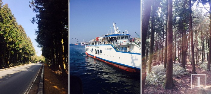 (좌) 비자림로, (중) 우도 들어가는 배, (우) 비자림로 옆 삼나무 숲