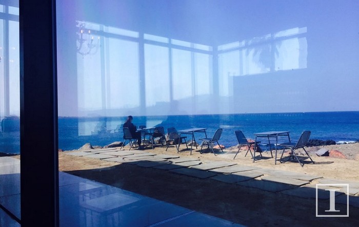해안도로를 따라 조금 더 안쪽에 위치한 카페 '몽상'으로 갔다. 몽상은 통유리로 돼 있어 애월 앞바다가 한 눈에 보였다.