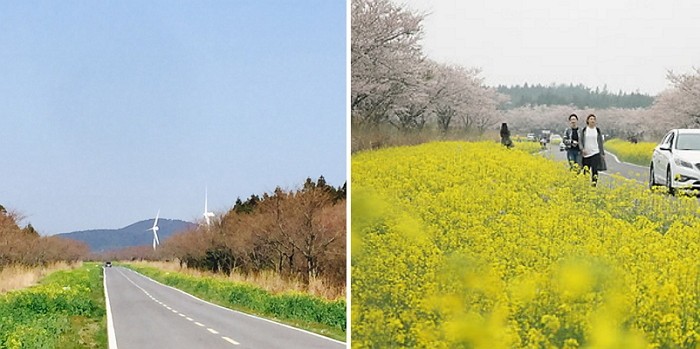 우리가 방문했을 때는 유채꽃이 꽃망울을 살짝 내민 정도였을 뿐이지만 4월 초순이 되면 도로를 따라 샛노란 유채꽃과 연분홍빛의 벚꽃을 볼 수 있을 것이다.