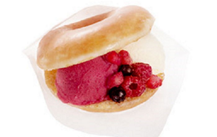 소개된 제품은 오리지널 글레이즈드 도넛을 반으로 나눈 뒤 바닐라와 딸기맛 아이스크림과 냉동 베리를 넣어 만들었다.