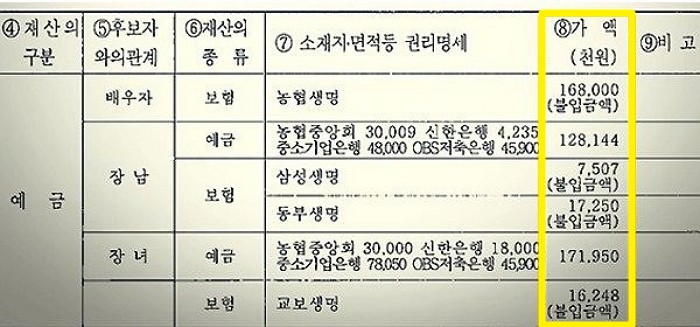 해당 자료에 따르면 유담 씨는 예금 1억 7천만 원과 보험 1,600만 원 상당의 재산을 갖고 있다.