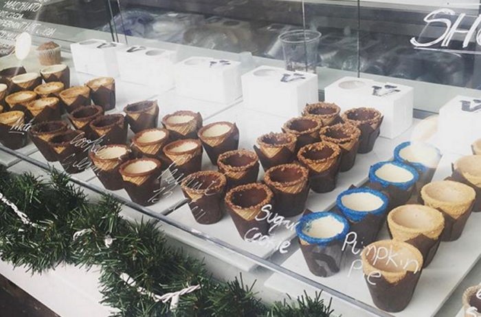 와플샷은 화이트 또는 다크 초콜릿으로 코팅된 와플컵에 핫초코, 에스프레소를 따르고 그 위에 우유거품, 생크림 등을 올려 먹는 디저트다.