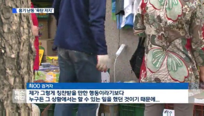 지난 26일 KBS 뉴스라인은 흉기를 휘두르며 살해 위협하는 남성 전모(46)씨를 한 시민이 막아 큰 사고를 예방할 수 있었다고 보도했다.