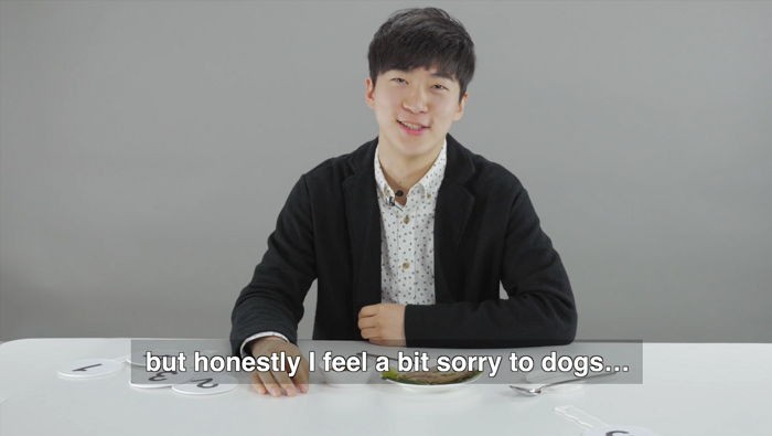 영상 제작자는 개고기라고 알았다가 염소고기라고 알게 되었을 때 어떤 느낌이 들었는지 물었다.