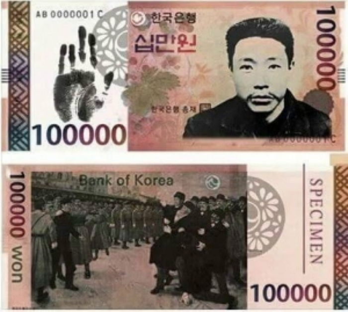 [인사이트] 권순걸 기자 = 아이돌의 역사 수준이 논란이 되면서 과거 온라인 커뮤니티에서 인기를 끌었던 안중근 의사가 들어간 10만 원권 지폐가 다시 한 번 화제다.