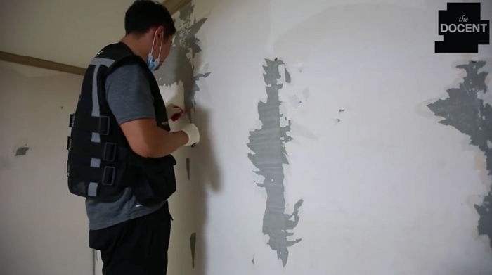 때문에 특수 청소부들은 바닥을 긁어내고 또 벽지를 뜯어낸다.