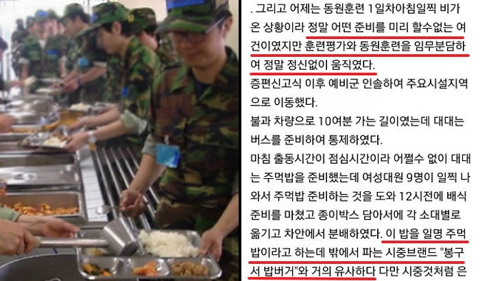 [인사이트] 전준강 기자 = 예비군에게 '비닐밥'을 제공한 동원훈련부대가 큰 논란이 가운데 '기동대장'을 역임하고 있는 어느 예비군 장교의 글이 문제를 키우고 있다.