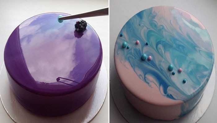 사진 속 케이크들은 흔히 과일, 초콜릿 등이 올라가는 일반적인 케이크와는 달리 우주를 담은 듯하며 장식이 거의 없을 뿐만 아니라 오로지 색의 조합으로 아름다움을 나타내고 있다.
