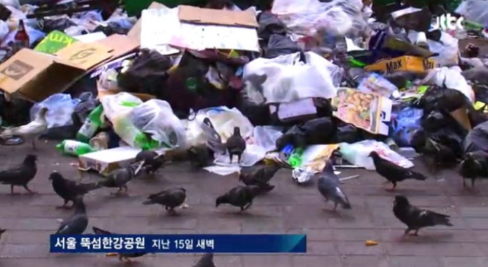 다음날 아침이 되면 한강공원에는 쓰레기가 넘쳐났고 그야말로 아수라장이 되어버린다고 환경미화원들은 푸념했다.