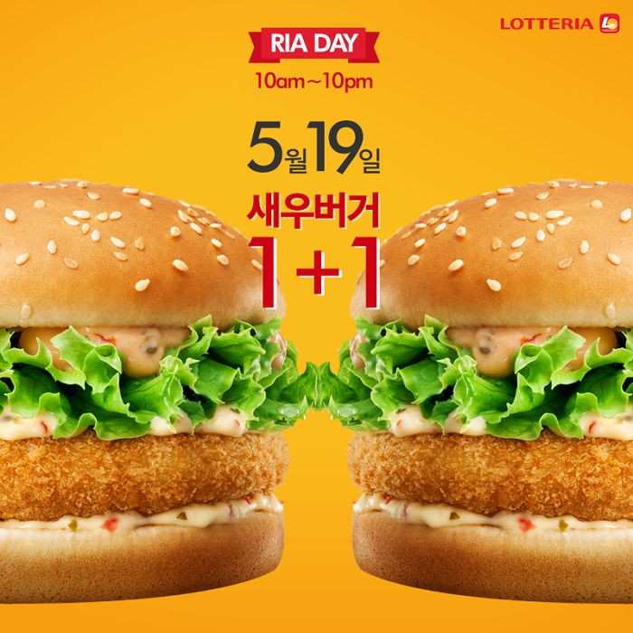 19일 롯데리아는 오늘 밤 10시까지 새우버거를 하나 주문할 경우 하나 더 제공하는 이벤트를 진행한다고 밝혔다.