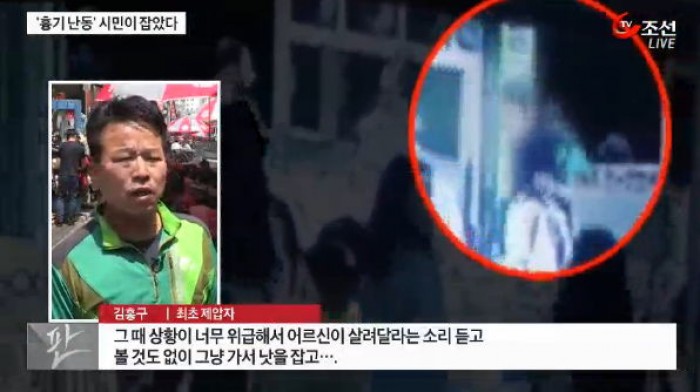 당시 인근에 있던 용감한 시민 53살 김홍구 씨는 이를 발견하고 곧바로 달려들어 제압했다.