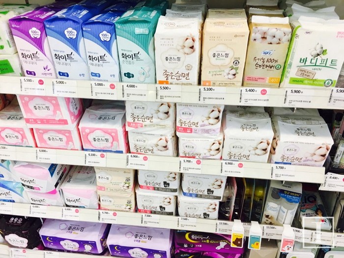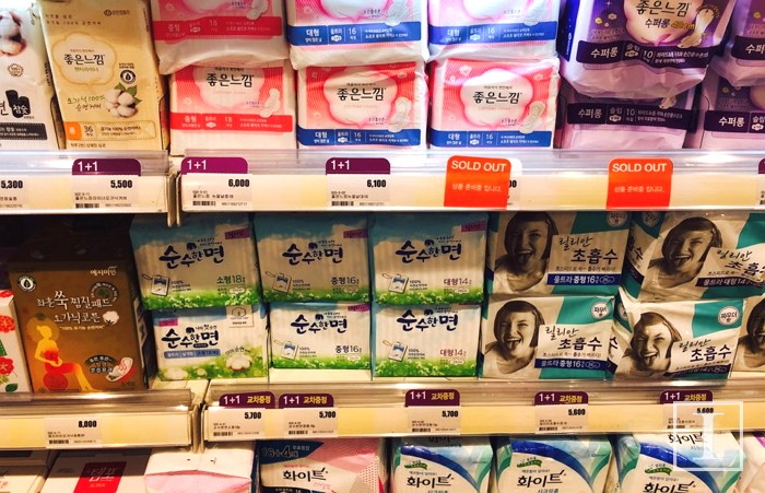 이번 행사는 이날까지 진행되며 오는 1일부터 가격이 인상되는 유한킴벌리 제품인 '좋은 느낌'과 '화이트', 소피 제품인 '바디피트', 릴리안 '순수한 면' 등의 다양한 생리대로 구성됐다.