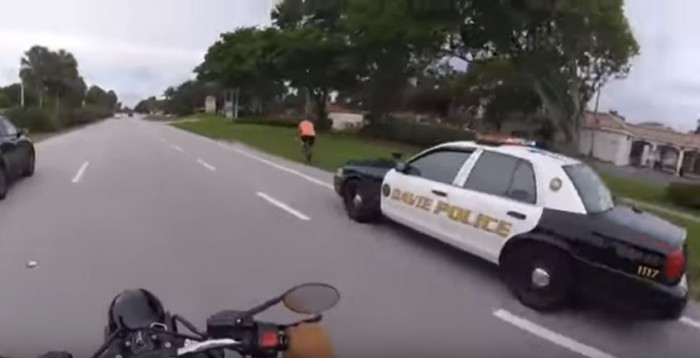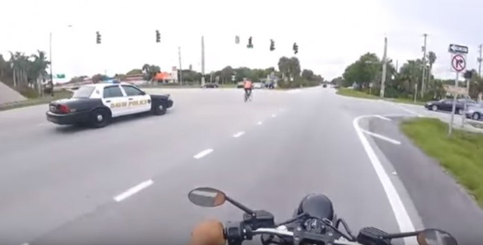 난폭하게 도로 위에서 질주하던 자전거 탄 남성은 이내 경찰차에 적발되고 말았다.