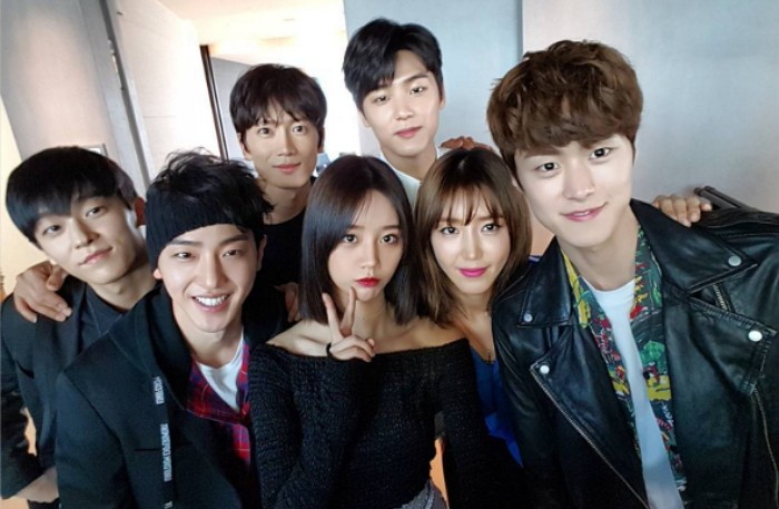 걸스데이 혜리와 배우 공명 사이에는 '채정안'이, CNBLUE 강민혁 옆에는 '지성'이 카메라를 응시하고 있다.