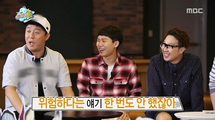 이에 김태호PD는 "위험하다"며 유재석을 감싸는 듯 말해 여섯 멤버들을 발끈하게 했고 유재석은 뻘쭘하면서도 괜시리 좋은 듯 잇몸을 드러내며 활짝 웃었다.