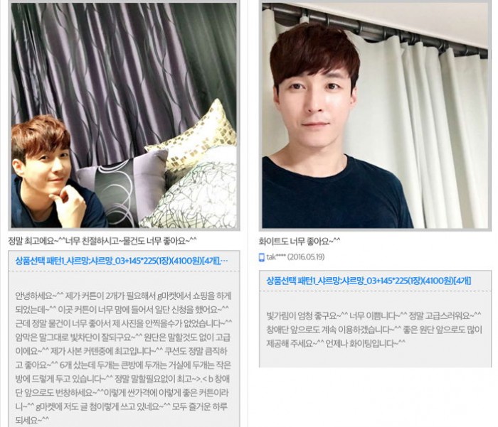 후기에는 "제가 커튼이 2개 필요해서 쇼핑을 하게 되었다"며 "원단은 말할 것도 없이 고급이고 제가 사본 커튼 중에 최고"라고 만족스러움을 드러냈다.
